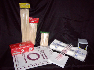Cañas curvables, palillos, manteles y servilletas (variedad de medidas y gramajes) |